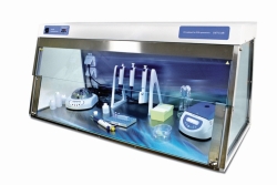 - La lámpara UV en la parte superior de la campana desinfecta el área de trabajo, inactivando los fragmentos de ADN/ARN durante 15-30 minutos de exposición.