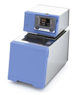 Heated bath circulators with stainless steel bath for operating temperatures up to 250 °C. Easy switching between internal and external control. With integrated cooling coil and powerful pressure and suction pump in a housing made of temperature and chemical resistant plastic. The large surface of the radiator allows for an optimum heat exchange, even heating of the medium and very fast heat-up times. The bath is easy to clean and has a drain valve with hose connection on the front for draining the bath. Can be operated with flammable liquids.