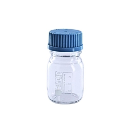 The bottles have a special formulated polymer coating which reduces the effects of impacts and holds the parts together in the case of breakage. The coating is highly transparent and can resist up to 135 °C for a maximum of 30 minutes. The bottles can be cleaned up to a temperature of 95 °C and can be repeatedly autoclaved at 121 °C. Coated bottles should not be exposed directly to open flames.