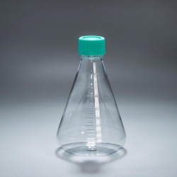 Matraces Erlenmeyer, PC, estériles, con fondo liso y tapón estándar
