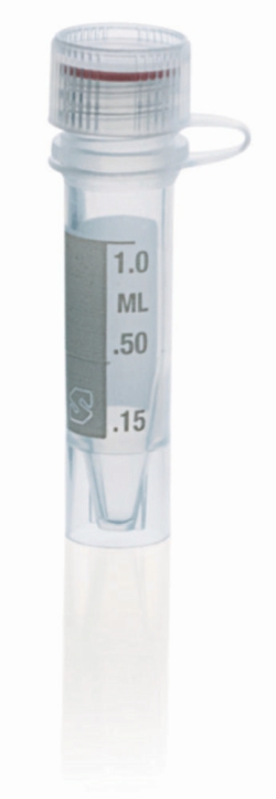 Reaction tubes with attached cover reduce the danger of contamination or mistakes due to mixing up covers. The silicone ring in the cover provides an optimal seal for the reaction tube without coming into contact with the contents of the reaction tube itself. Tubes are suitable for storing liquid nitrogen in the gas phase.