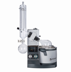 Scope of supply: Flask clamp Easy-Clip, vapour tube, ventilation cap, heating bath, 1-l receiving flask, 1-l evaporating flask, Control-Box. Supplied condensor as indicated.