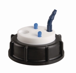 For the safe withdrawal of solvents. Screw caps, with freely movable insert made of PTFE, with PFA fittings for capillaries, hose olives for tubes with 5.0 - 11.5 mm inner diameter and a connection for exhaust air filter. Please order your exhaust filter separately.