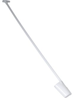 The DispoLadle is a sampling scoop specially designed for disposable use. The scaled scoop with embossing can be used for measuring. It shows contents in increments of 10 ml, up to 200 ml. An ergonomic handle and a spout on both sides for right or lefthand operation make handling simple and easy.