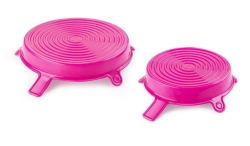 Tapa de silicona extensible para cubrir de forma segura los recipientes, por ejemplo, para proteger contra el polvo o salpicaduras de soluciones. Los lados anchos y superpuestos de la tapa de silicona se cierran bien con la pared del recipiente. Adecuada para temperaturas de -40 °C a 180 °C. La exposición prolongada a disolventes puede causar hinchazón del material.