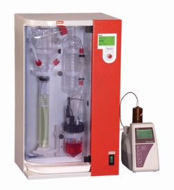 Unidad de destilación de vapor con adición automática de NaOH, H2O y H3BO3 con extracción automática de los residuos de la muestra, con 99 programas y una opción de conexión para titu